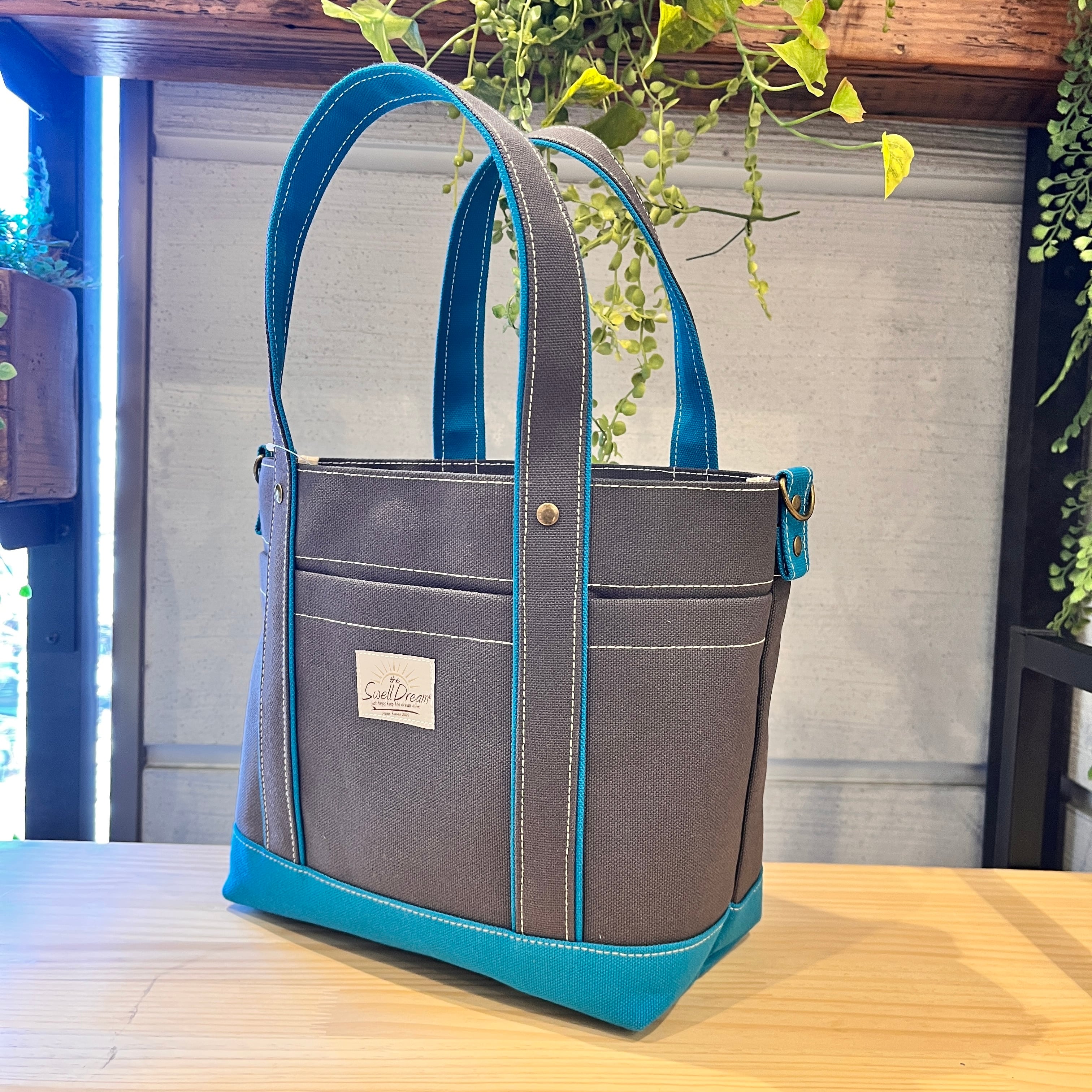 帆布トートバッグ アスファルトグレー ターコイズ 3サイズ